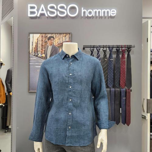 [바쏘옴므]심플ㆍ포인트배색 린넨셔츠WSZ1TT80