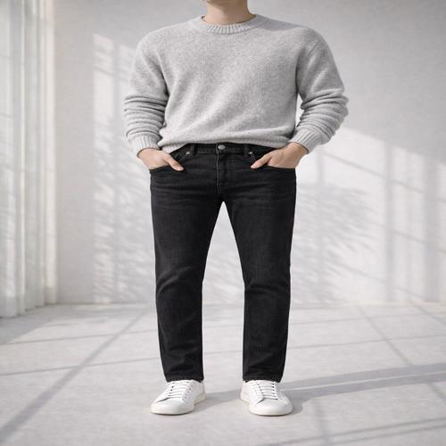 [바쏘옴므]남성 슬림일자핏 그레이데님 스판청바지WSZ4-PS87-AGR