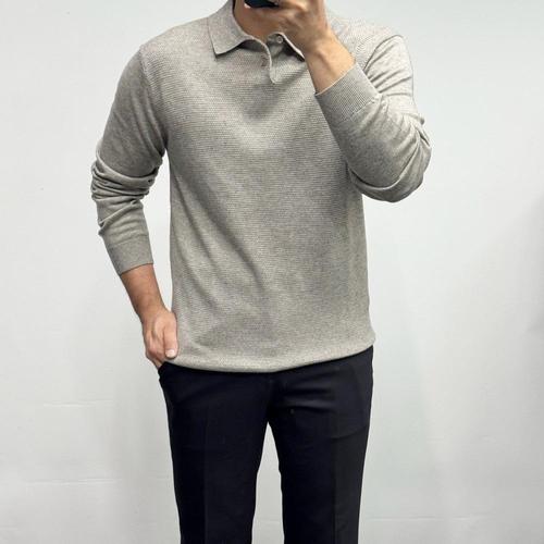 바쏘 25시즌 가을 겨울 순모 니트 스타일 남성 카라티셔츠 [베이지] 496573