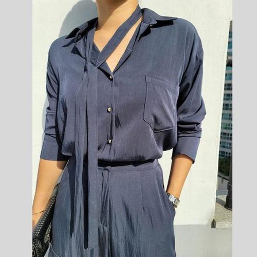 [바이어스]루즈핏 카라넥 블라우스 셔츠 와이드 슬랙스 세트 룩 (18278717)