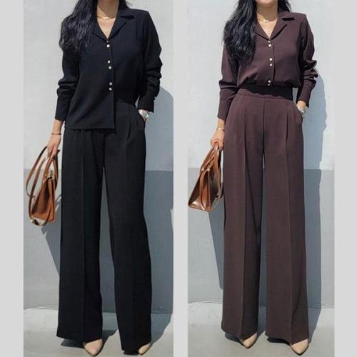 [바이어스]투피스 정장 세트 싱글 하프 자켓 와이드 슬랙스 팬츠 (18263809)