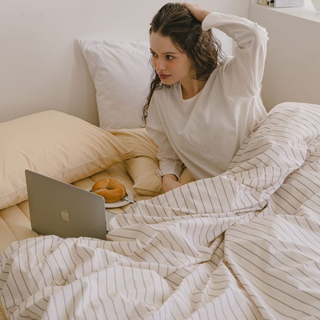 멜란 스트라이프 면모달 사계절 이불커버세트 QK 2colors