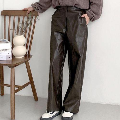 [다잇템]여자 넓은 주머니 일자핏 가죽팬츠 고무줄 바지
