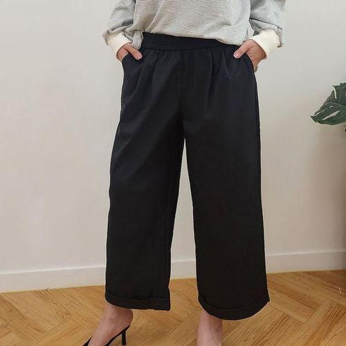 [다잇템]여자 출근룩 고무줄 단가라 와이드핏 박시 바지