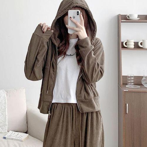 [다잇템]여자 골덴 고무줄 통팬츠 2WAY 후디집업 세트