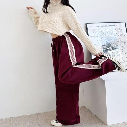 [BZJL3RHM_4C]캐주얼 테잎 트랙 밑단스트링 와이드 팬츠