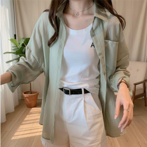 [옷자락]여성 여리핏 시스루 데일리 블라우스 바캉스룩