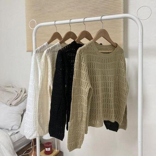 [셀러허브_여성트랜드패션]ONM 4컬러 바캉스룩 루즈핏 여름 긴팔 펀칭니트