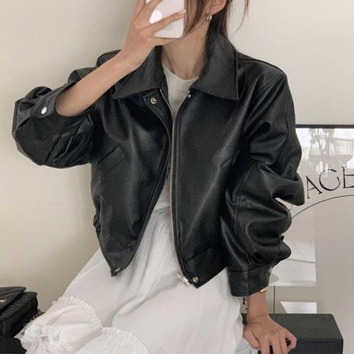[드레스날다]요즘핫해요 카라넥 페이크레더 가죽 점퍼
