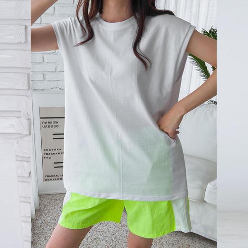 여성 박스핏 SS 여행룩 슬리브리스 U넥 스타일