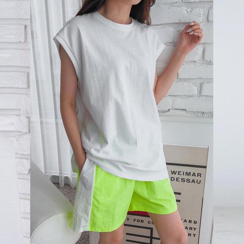 남여공용 무지 플로우 박스 민소매 티셔츠 5C-TS5-Q032-라임