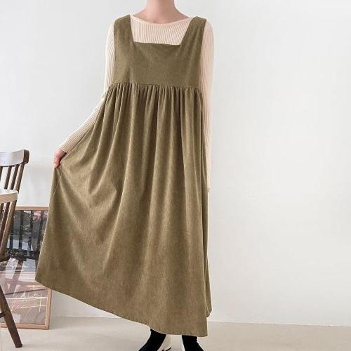 [다잇템][다잇템] 여자 FW 속기모 박스 스퀘어넥 코듀로이 슬리브리스 롱원피스_23562493_588872