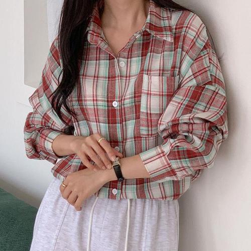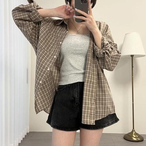 [옷자락] 여성 내추럴 데일리 루즈핏 체크 박스 셔츠