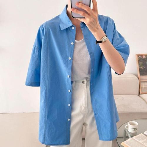 [다잇템]여성 남방 원컬러 엷은 단추 박스 블라우스