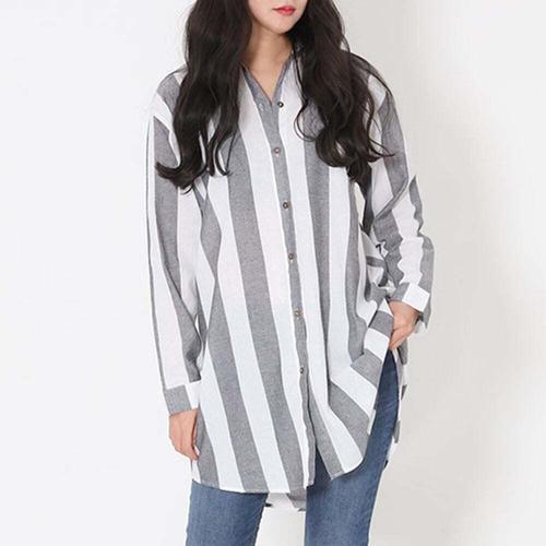 [셀럽하우스]여름 WICQ0651 남방 스트라이프 박스 롱셔츠 여성 체형커버