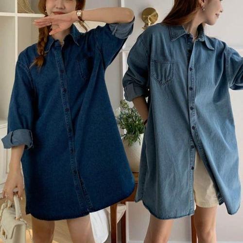 [셀럽하우스]데님미디셔츠원피스 CNGI1500 여자데님셔츠 박스핏데님셔츠