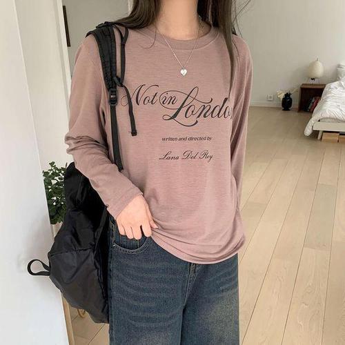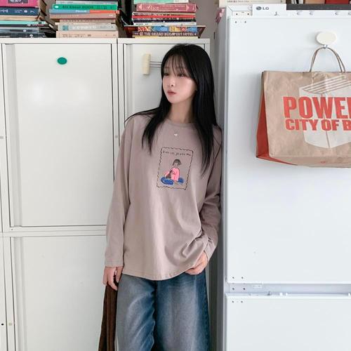 [옷자락] 여자 캐주얼 프린팅 박스핏 라운드넥 긴팔 티셔츠