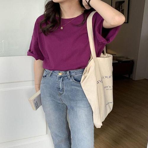 [에이치플러스몰]11컬러 라운드 면티 티셔츠 여유핏 박스티 기본면티