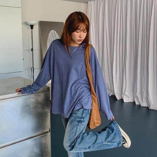 [다잇템]여자 무지컬러 박스핏 면원단 긴팔티