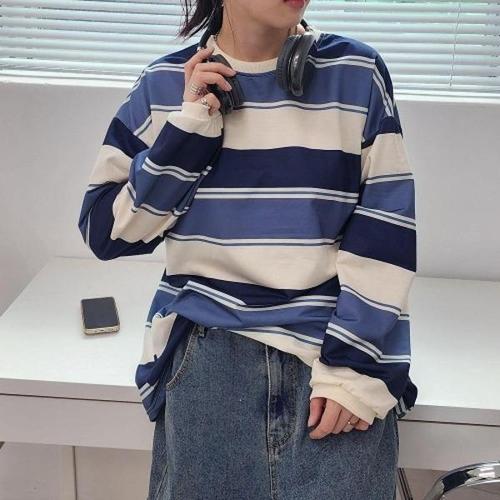 [다잇템][다잇템] 여자 박스 콘트라스트 줄무늬 U넥 링거 아방핏 티셔츠_22758910_588872