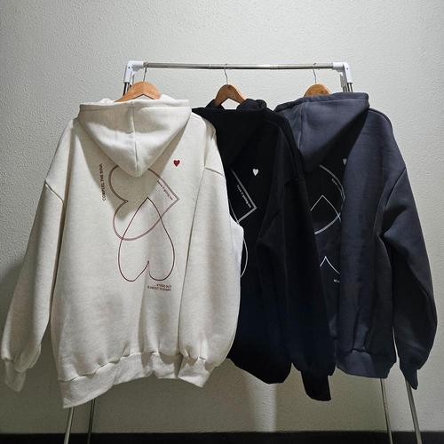 여자 보온 후디 하트프린팅 박시핏 박스 티셔츠