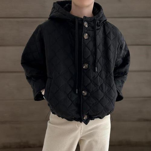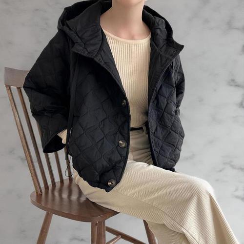 [옷자락] 여성 8부 패딩 하이넥 후드 퀼팅 박시 숏점퍼