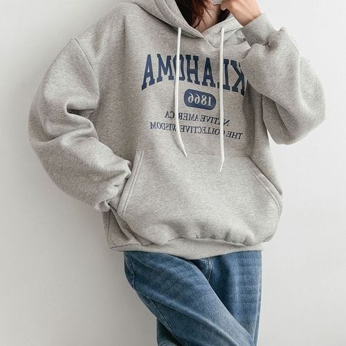 [옷자락] 여성 하트 프린트 박시 오버사이즈 기모 후드티