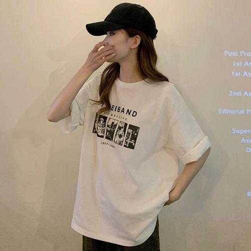 [셀럽하우스]슬리브리스 UBNX1903 여성반팔티 박시 그래픽 라운드 나시티 여