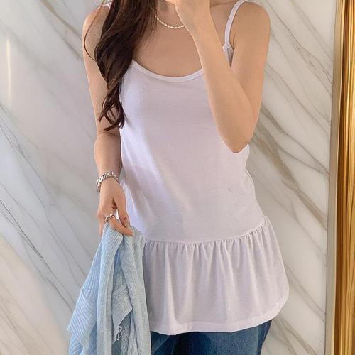 [다잇템]여자 코디 민무늬 힙커버 박시 끈 나시 (32530576A)
