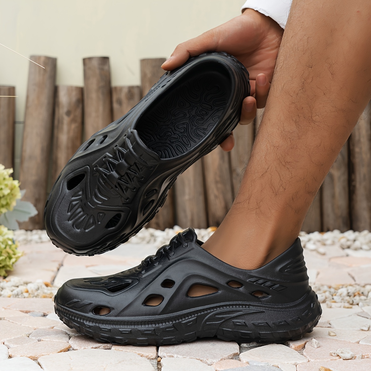 TEMU 남성용 여름 패션 DIY 신발 꽃 트렌디 아웃도어 비치 샌들, 개성 있는 하프슬립 듀얼용 슬리퍼