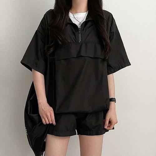 [에이치플러스몰]반집업 아노락 캐주얼 반팔 반바지 필수템 셋업 여성