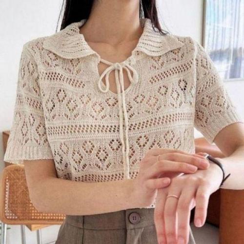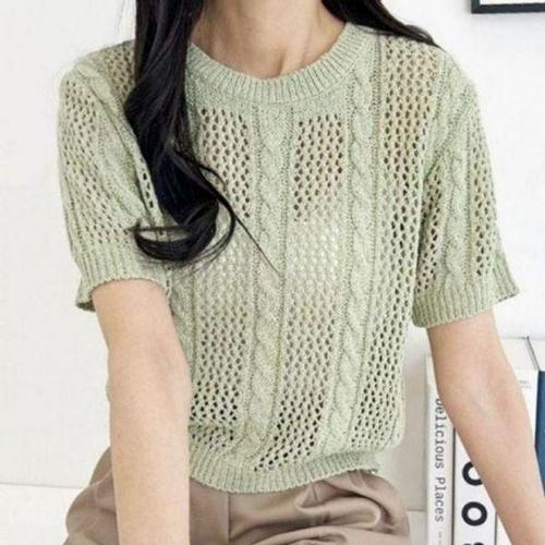 [에이치플러스몰]여자 인기 시스루 캐주얼 반팔 감성 니트 필수템 여름