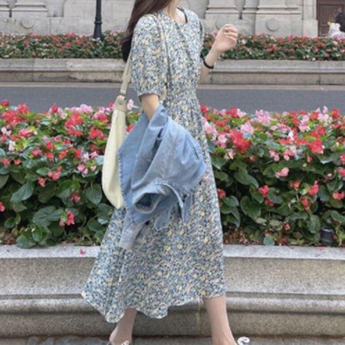 휴양지 쉬폰 반팔 뷔스티에 원피스 여름 롱니트 WFKPDQ6