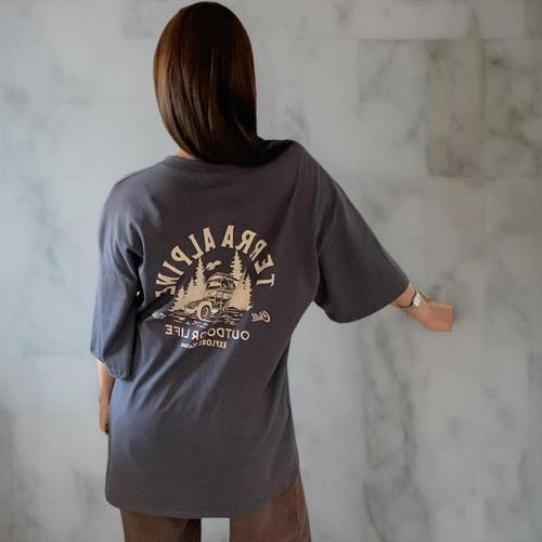 스타일아유 여성 여름 순면 프린트 레터링 루즈핏 반팔 티셔츠 빅사이즈 M~2XL 오버핏 반팔티 자체제작[A3G3TS1697]