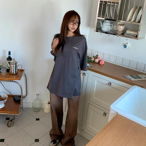 [옷자락] 여성 캐주얼 빈티지 워싱 면혼합 오버사이즈 롱 반팔티