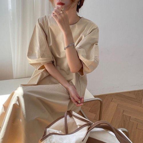[블론디]EZL_(55~88)무지 면 롱 원피스 반팔티