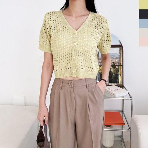 [셀러허브_여성트랜드패션]ONM 펀칭 크롭기장 여름 볼레로 브이넥 반팔가디건 여성