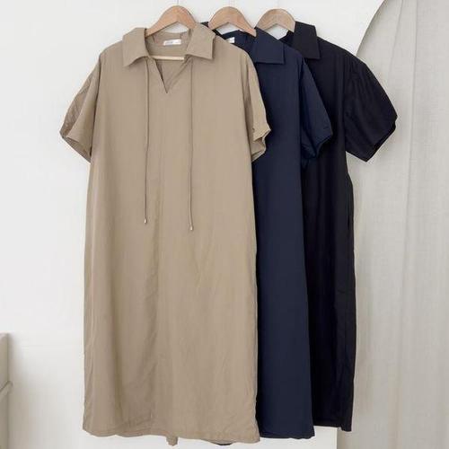 블레스유 여성 반팔 카라 반집업 롱 루즈핏 빅사이즈 원피스 봄 여름 가을 ~77