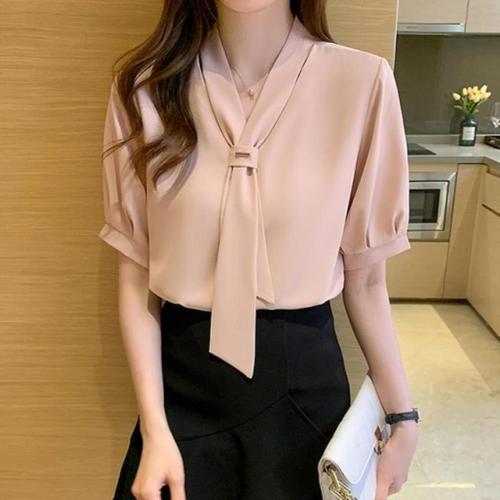[다잇템]여자 보우 SS 반소매 오피스룩 클래식 블라우스 (12262997A)