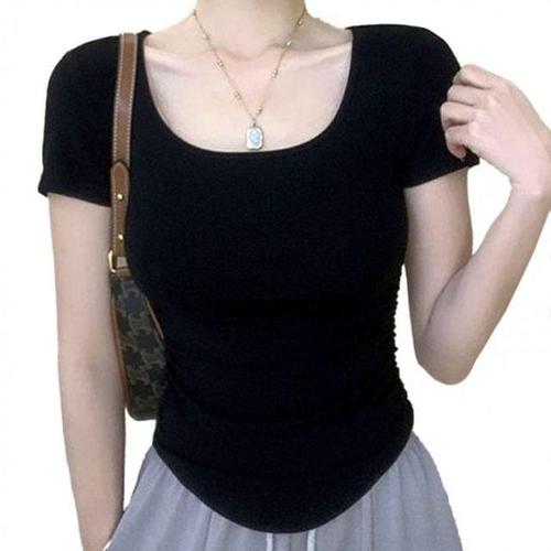 [에이치플러스몰]여성 여름 반팔티셔츠 기본 이너 라운드넥 U넥 슬림핏 티셔츠