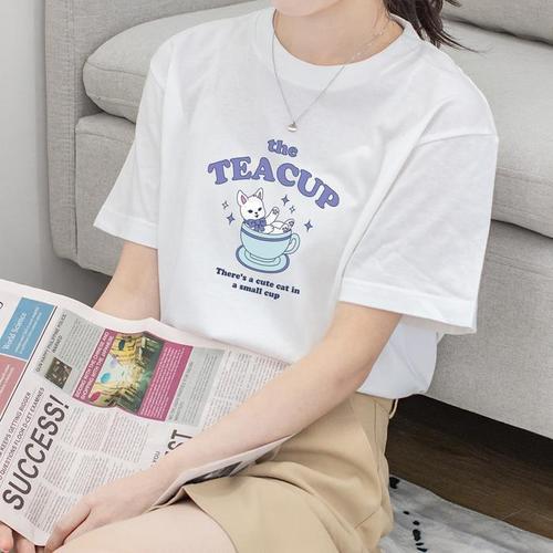 [험블][험블] 레터링 여자 면 여름 17수 기본 반팔티 (13089500A)