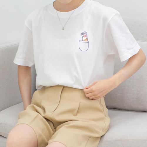 브이넥 포켓 반팔티 여자 기본 무지 면티 여름 티셔츠 여성 기본티 무지티 라운드