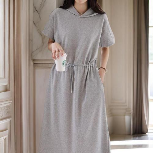 [셀럽하우스]후드 DLIL5807 원피스 여름 박시 반팔 여행룩 롱원피스