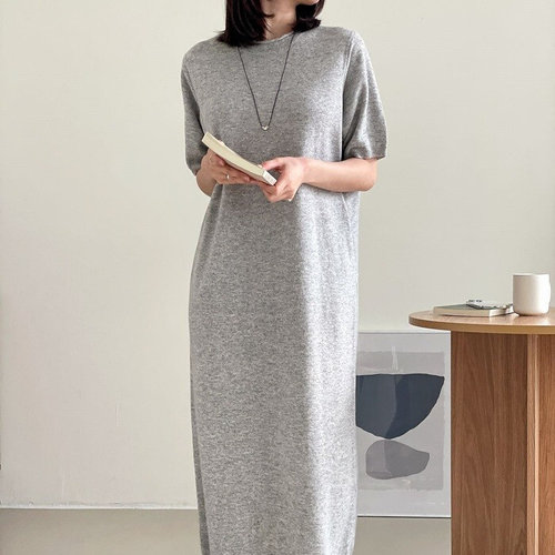 플러리싱 / 클래식 울100 반팔 라운드 롱 원피스 플러리싱