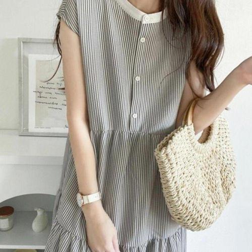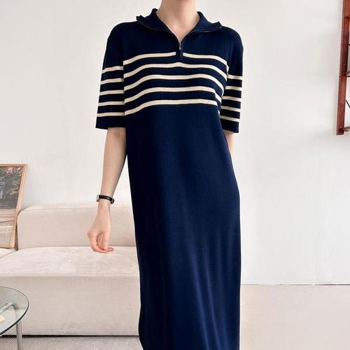 [오너클랜]인기상품 여름용 스트라이프 반팔 카라 롱 원피스 이지웨어 [WFLLQXA_260305]