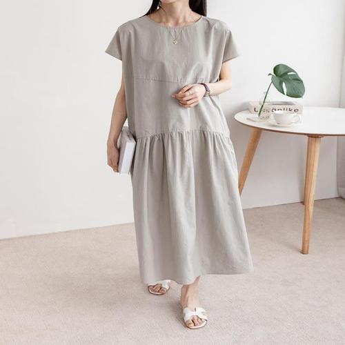[블론디]EZL_(55~88)무지 면 롱 원피스 반팔티