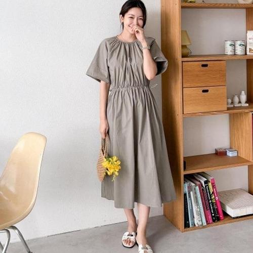 [다잇템][다잇템] 여성 등원룩 면원단 잔주름 후레아 반소매 드로우코드 롱원피스_16897743_588872