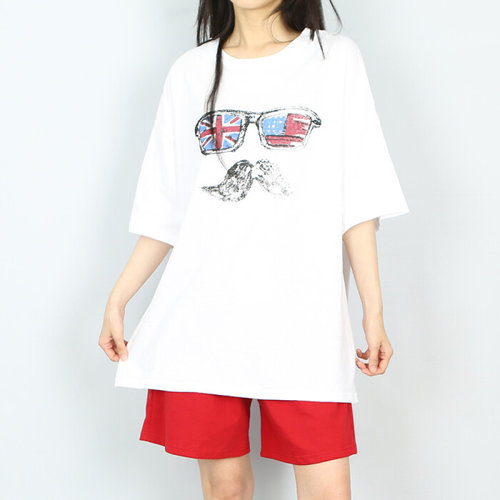 파라노말샵 / (박스티) 성조기 선글 라운드 오버핏 트임 반팔 티셔