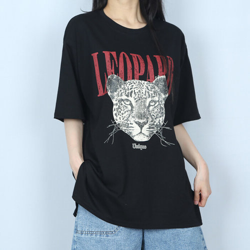 파라노말샵 / (박스티) 레오파드 오버핏 트임 반팔 티셔츠 (파라노