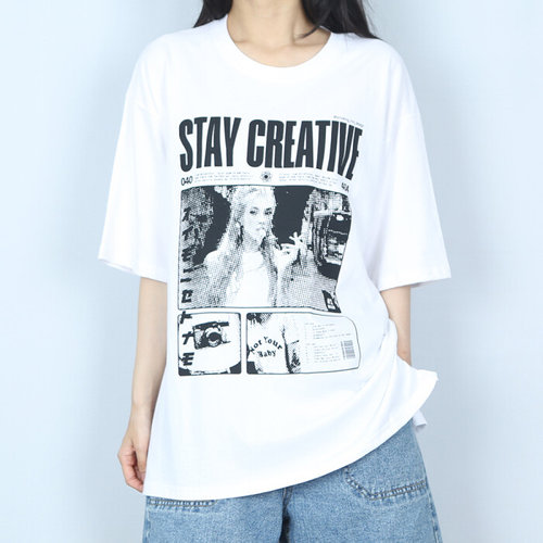 파라노말샵 / (박스티) 스테이 포토 라운드 트임 반팔 티셔츠 (파라